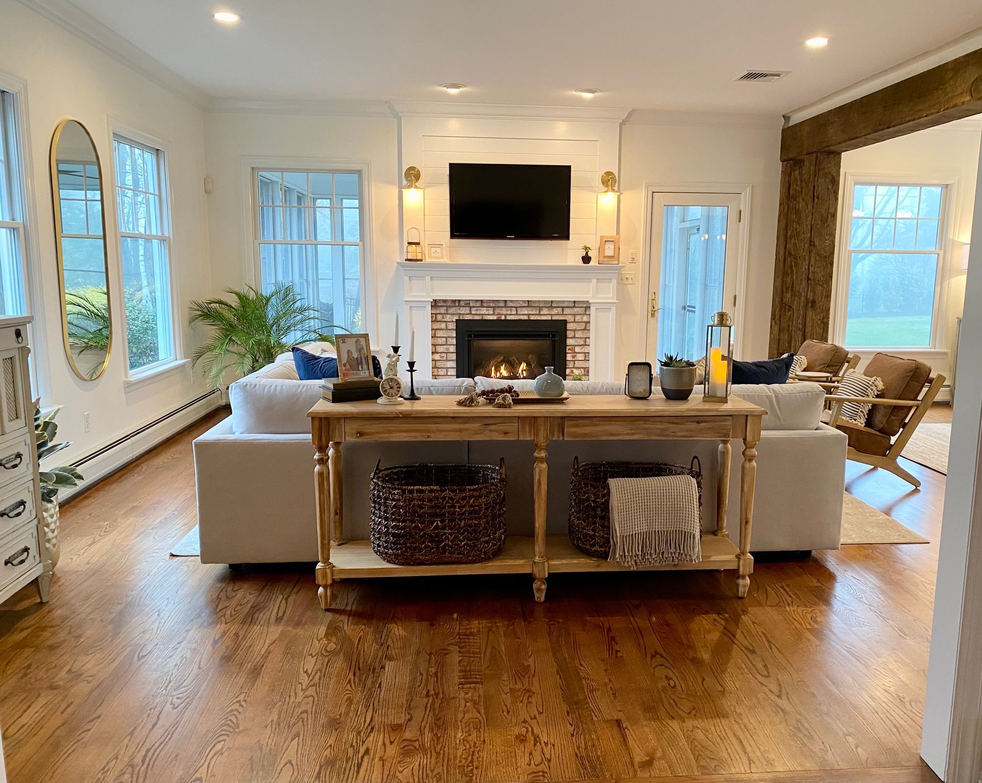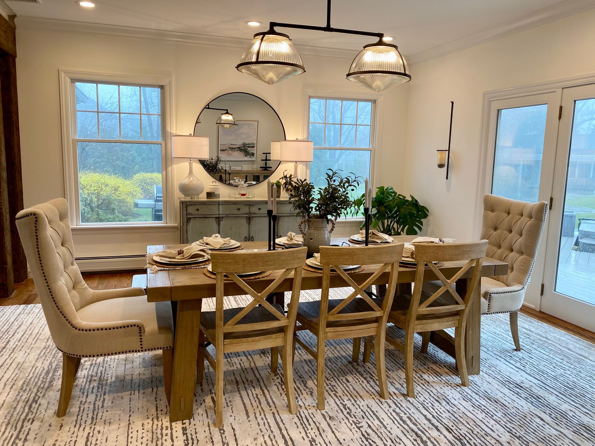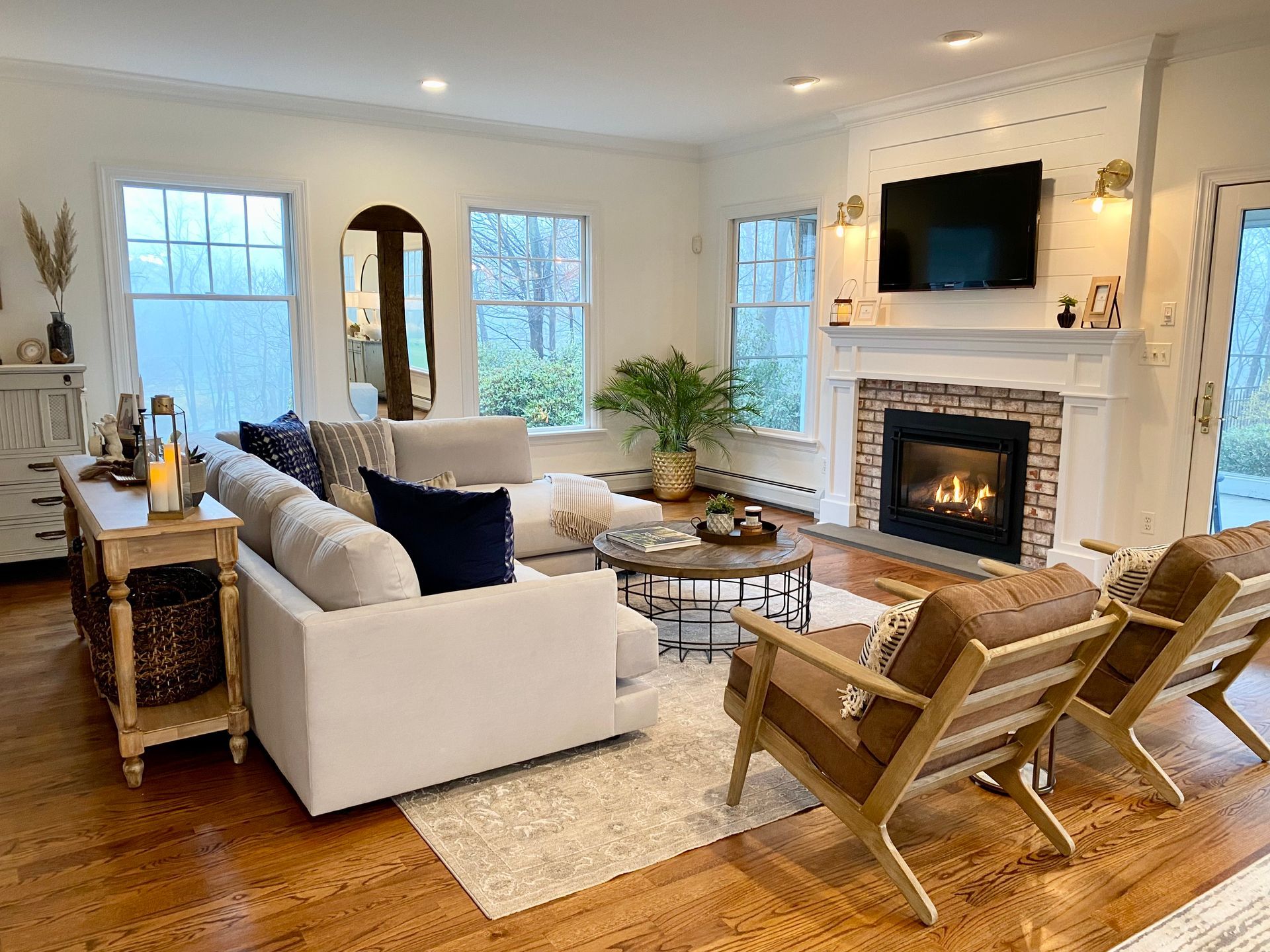 Blending traditional and modern design creates a harmonious space that combines the timeless elegance of classic elements with the clean lines, simplicity, and functionality of contemporary styles. This fusion creates a balanced atmosphere that feels both welcoming and sophisticated.