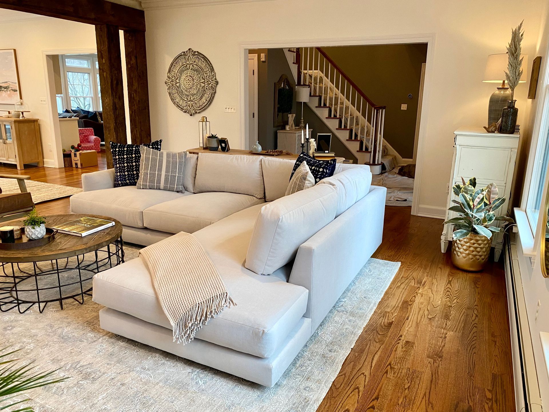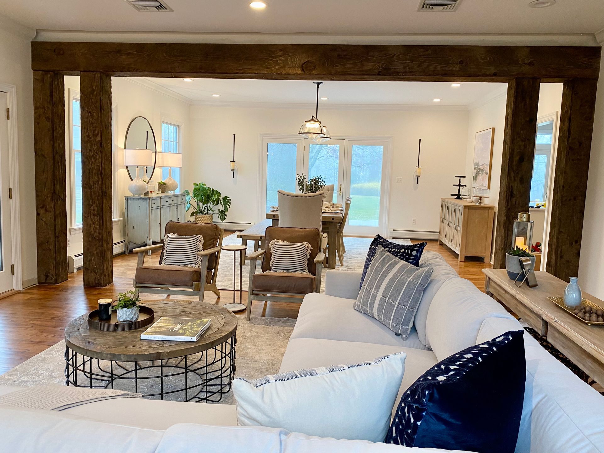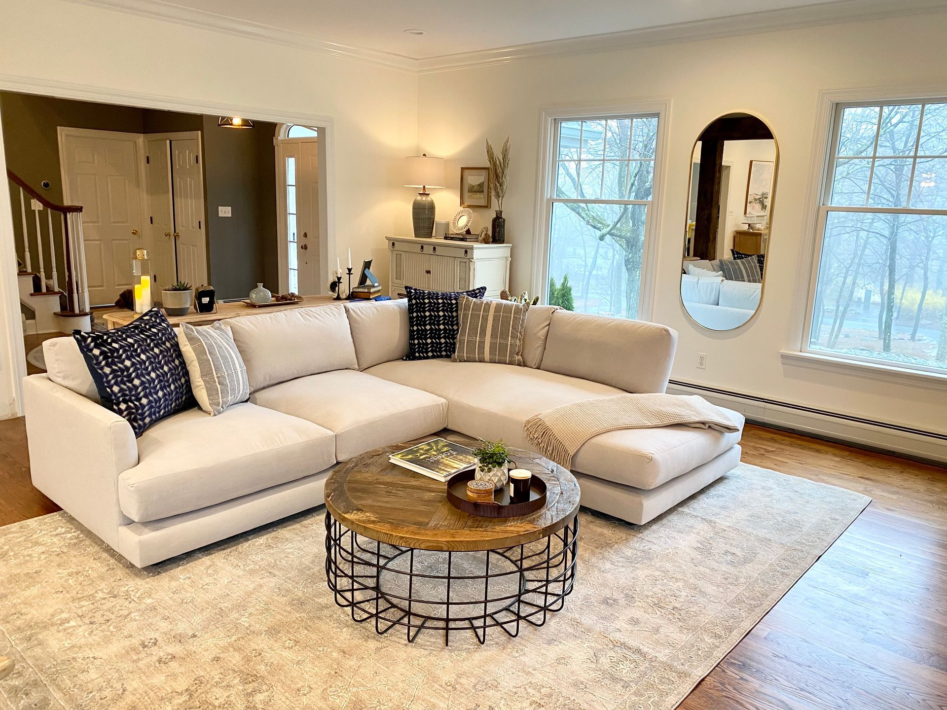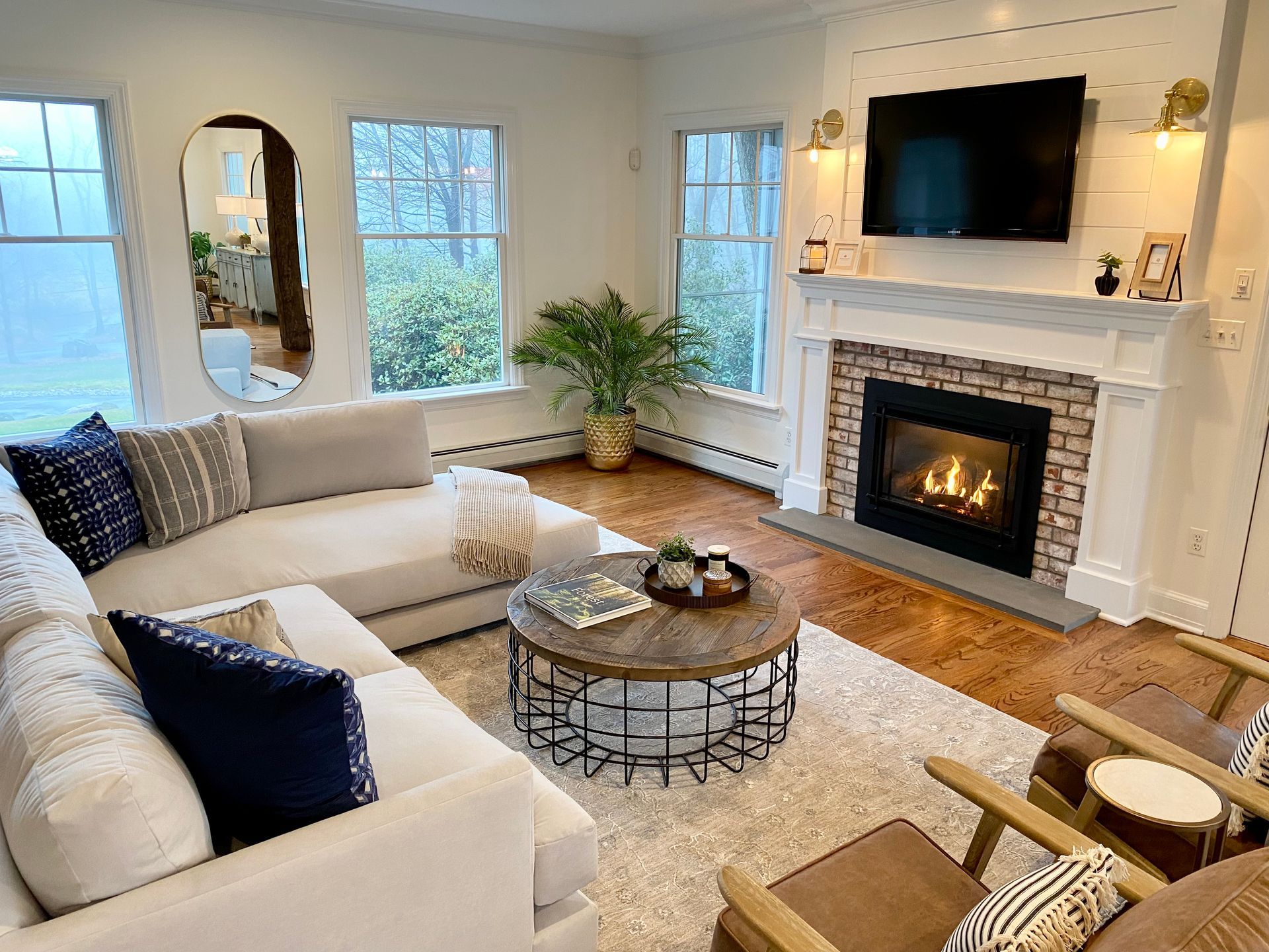 Blending traditional and modern design creates a harmonious space that combines the timeless elegance of classic elements with the clean lines, simplicity, and functionality of contemporary styles. This fusion creates a balanced atmosphere that feels both welcoming and sophisticated.
